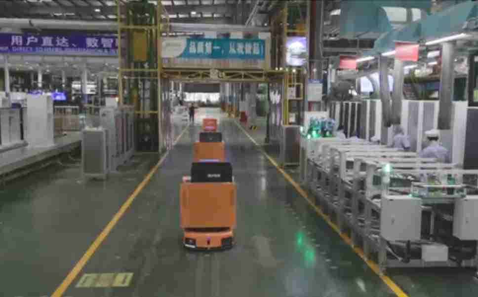 为车载冰箱物流配送打造的智能解决方案,,包含产中物流通过潜伏举升AMR搬运至线边,,产后成品物流智能仓储,,流程包含产中物流智能齐套入库,,,线边安灯叫料AMR智能配送至线边,,成品入库、、出库,,,通过无人堆高车机器人,,,智能仓储管理替代人工作业管理,,,,实现更高存储、、更高效率、、更具柔性化的解决方案。。。